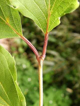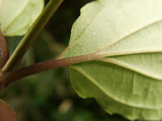 | 画像13 新葉の葉柄は赤みを帯びて白い軟毛が疎らに生える。 撮影:(2005.6.12 県北部) |