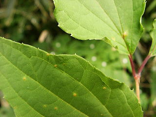 | 画像9 葉の下面は淡緑色で基部以外は無毛、葉柄は長さ約8ミリ。 撮影:(2005.6.12 県北部) |