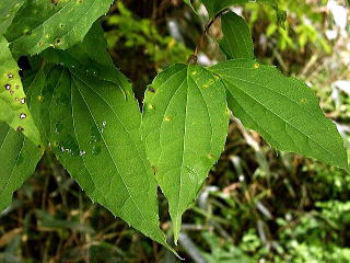 | 画像11 葉の縁には先の尖った小さな鋸歯が疎らに出る。 撮影:(2005.6.12 県北部) |