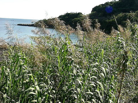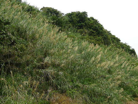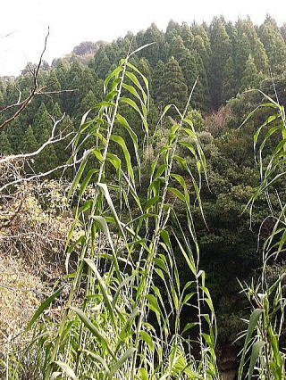 画像2 日南海岸山手側の斜面も樹木のないところは一面ダンチクに覆われている。