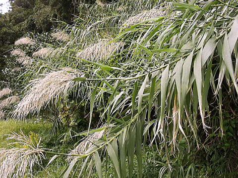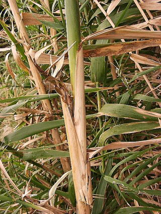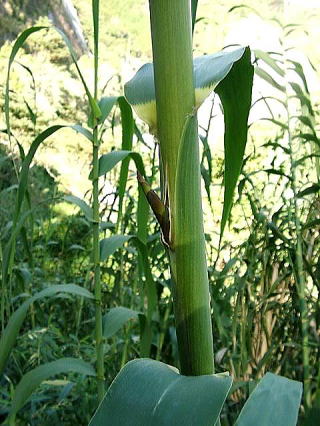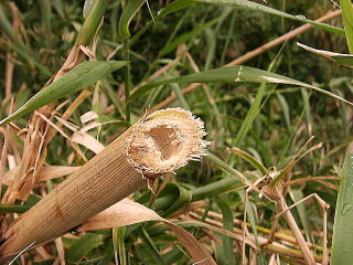 画像15 稈は中空でタケに似ているが折れやすく利用されない。 撮影:(2008.11.23 日南市) |