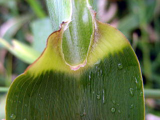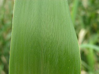 画像13 葉身の基部は葉耳状になって稈を抱き、縁の白毛がはっきり見える。