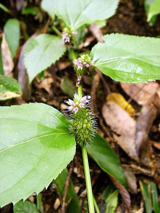 画像3 花序は長さ約3cm、基部は殆ど葉腋に接して多くの花をつける。ガクは深く5裂して、長短のある裂片は線状皮針形で先は細く尖る。