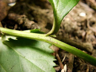 | 画像12 短い葉柄の基部。茎は無毛で5〜6の稜がある。撮影:(2005.9.23 宮崎市) |