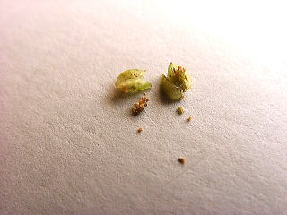 画像6 正面の黄白色に見える果実は扁平な卵円形をした刮ハで長さは3ミリほど。