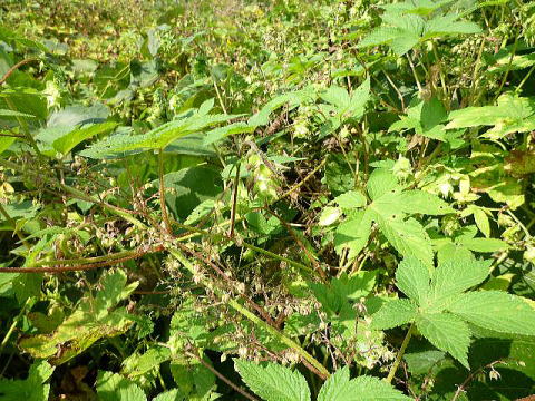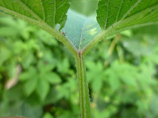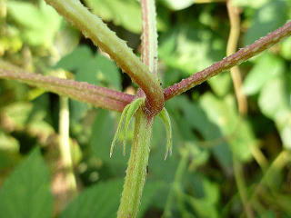 画像11 葉柄に稜があり多くの小逆刺があって手でも服でもなんにでも絡んでくっつく。