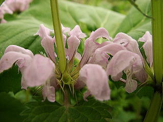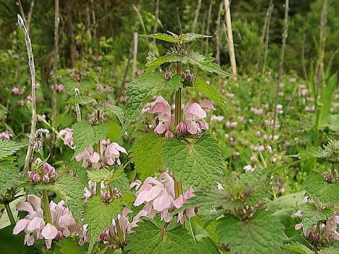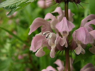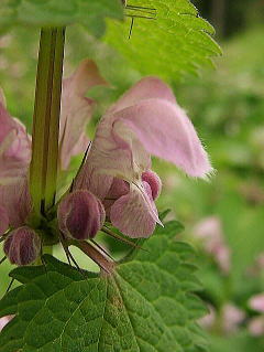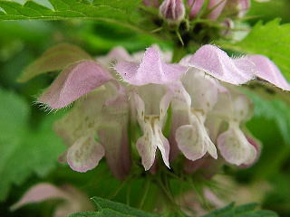 | 画像4 上唇は屋根となって、オシベの花粉が雨に濡れるのを防ぐ形になったシソ科らしい花。 |
