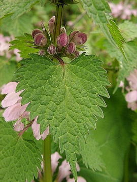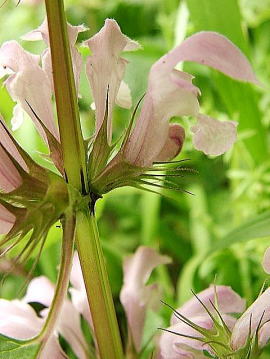 画像7 真四角の茎、画像3で見た5つの萼裂片の様子と、2cmほどの葉柄。 |