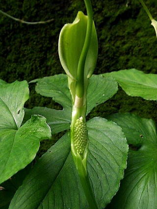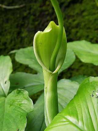 画像2 花茎の仏炎苞の開いた部分は長さ5cmほどで中を付属体が突き抜けている。