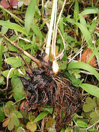 茎下部の赤みはあまり見られないが、太い根茎と細い根は赤みを帯びる。